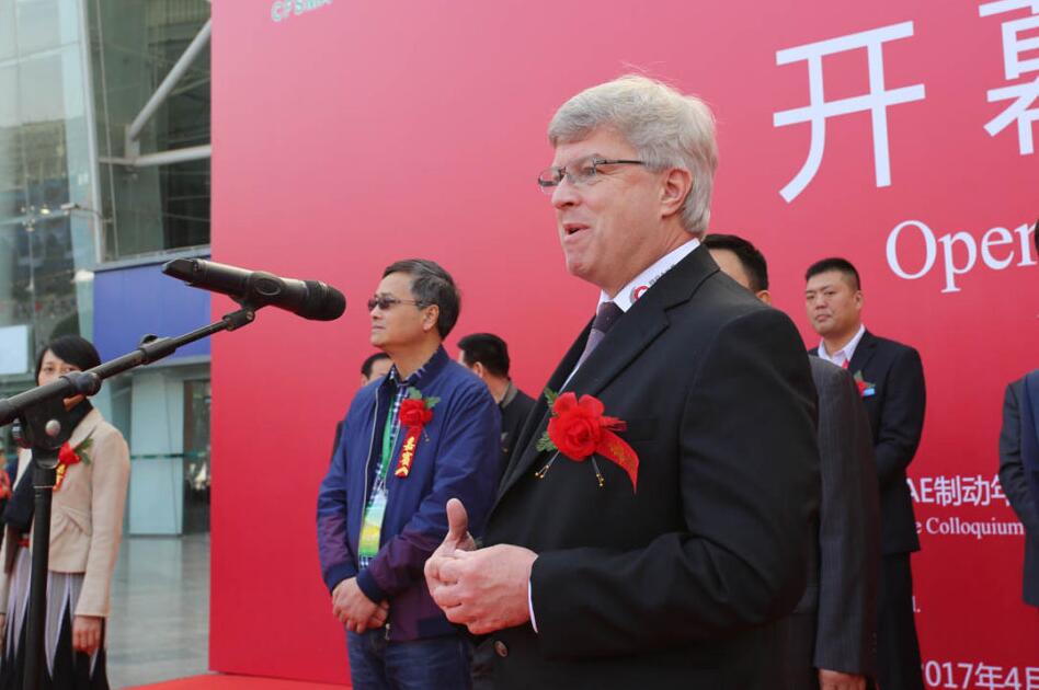 中國(guó)建筑材料聯(lián)合會(huì)會(huì)長(zhǎng)助理、中國(guó)國(guó)際貿(mào)易促進(jìn)會(huì)建材料分會(huì)副會(huì)長(zhǎng)、中國(guó)摩擦密封材料協(xié)會(huì)常務(wù)副理事長(zhǎng)王耀先生、孫忠義先生、中國(guó)摩擦密封材料協(xié)會(huì)輪值理事長(zhǎng)、浙江國(guó)泰密封材料股份有限公司常務(wù)副總經(jīng)理吳益民先生、山東圣泉集團(tuán)股份有限公司營(yíng)銷總監(jiān)薛峰先生、杰瑞先生、美國(guó)SAE制動(dòng)年會(huì)原任主席馬溫先生、成都世紀(jì)城新國(guó)際會(huì)展中心副總經(jīng)理夏珺女士為開幕式剪彩?,F(xiàn)場(chǎng)上千名學(xué)者、經(jīng)銷商和觀眾參加了開幕式。
